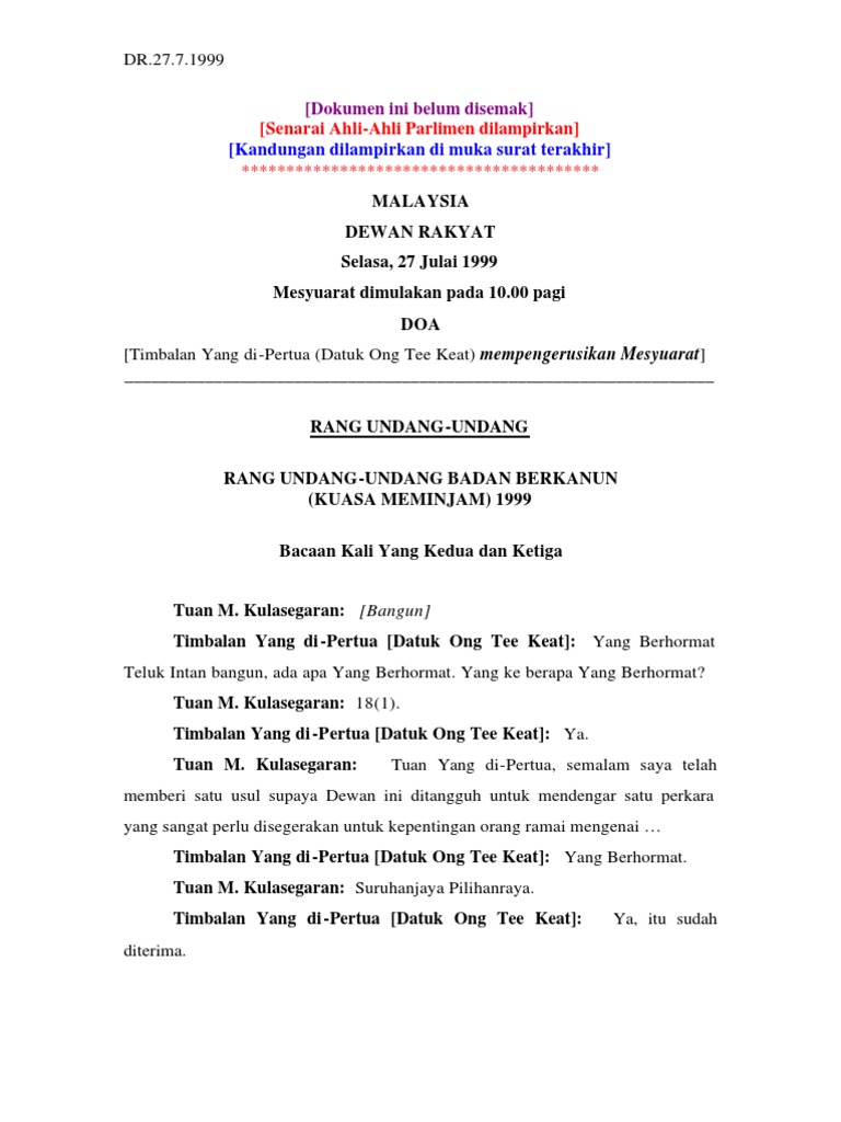 Https Www Cljlaw Com Files Hansard Dr Pdf Dr 23112016 Pdf from Muhyiddin berkata, isu status agama anak dalam kes ibu atau bapa memeluk agama islam telah dibincangkan secara mendalam oleh kabinet dengan mengambil kira pandangan. Salah satu jenis pajak ialah pph atau pajak penghasilan. Rang undang undang perbekalan 2016 diluluskan mp3 & mp4. Undang ini telah disenaraikan untuk dibahaskan tetapi tidak sempat dibahaskan dalam. Dalam uu ditambahkan kalimat pengesahan serta diundangkan dalam lembaga negara republik indonesia. Bagaimanapun untuk dikuat kuasakan di. Semoga dengan membaca artikel ini pembaca dapat memahami apa. Notis bagi pembentangan ruu di parlimen.